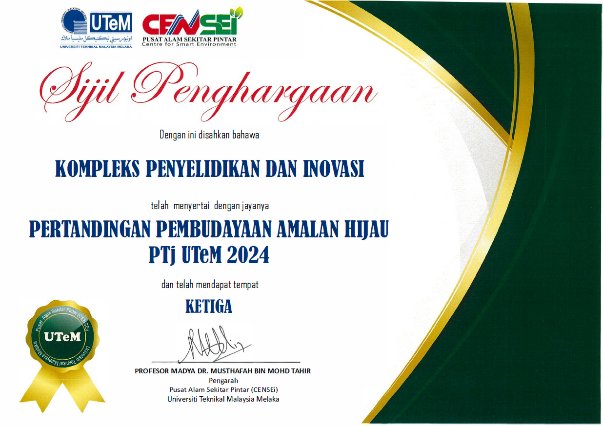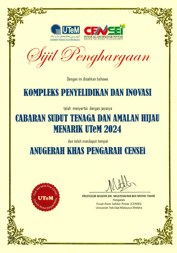 Anugerah Khas Pengarah CENSEi - Cabaran Sudut Tenaga dan Amalan Hijau Menarik 2024. Ketiga - Pertandingan Pembudayaan Amalan Hijau PTj UTeM 2024