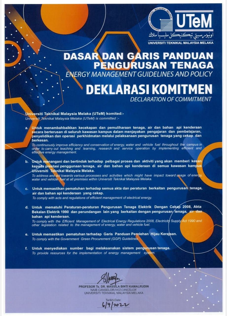 Dasar ini bertujuan untuk menerangkan pengurusan tenaga di Universiti Teknikal Malaysia-Melaka.